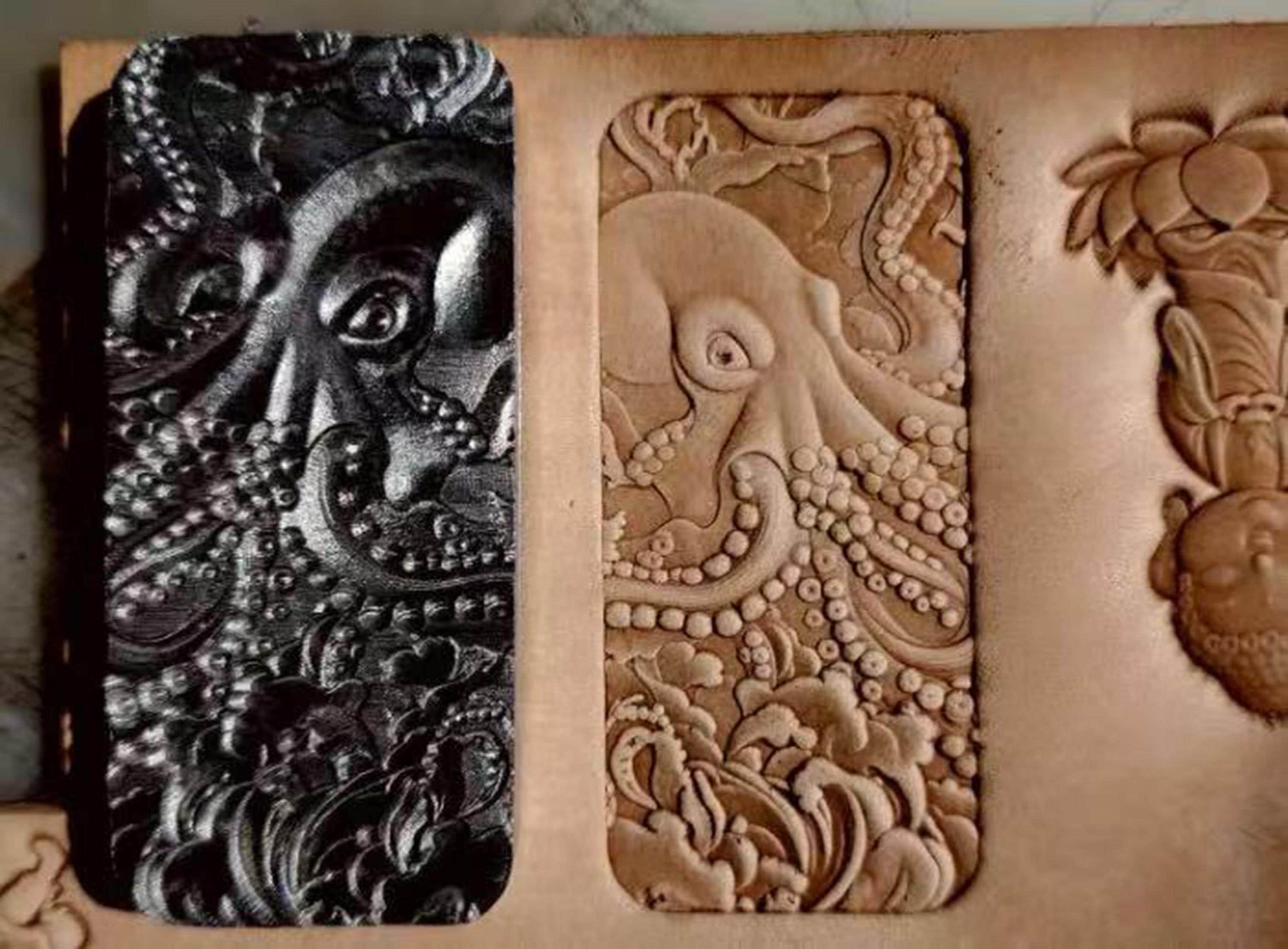 Octopus cartoon character 3D leather embossing die, handmade leather goods vegetable tanned metal embossing die
