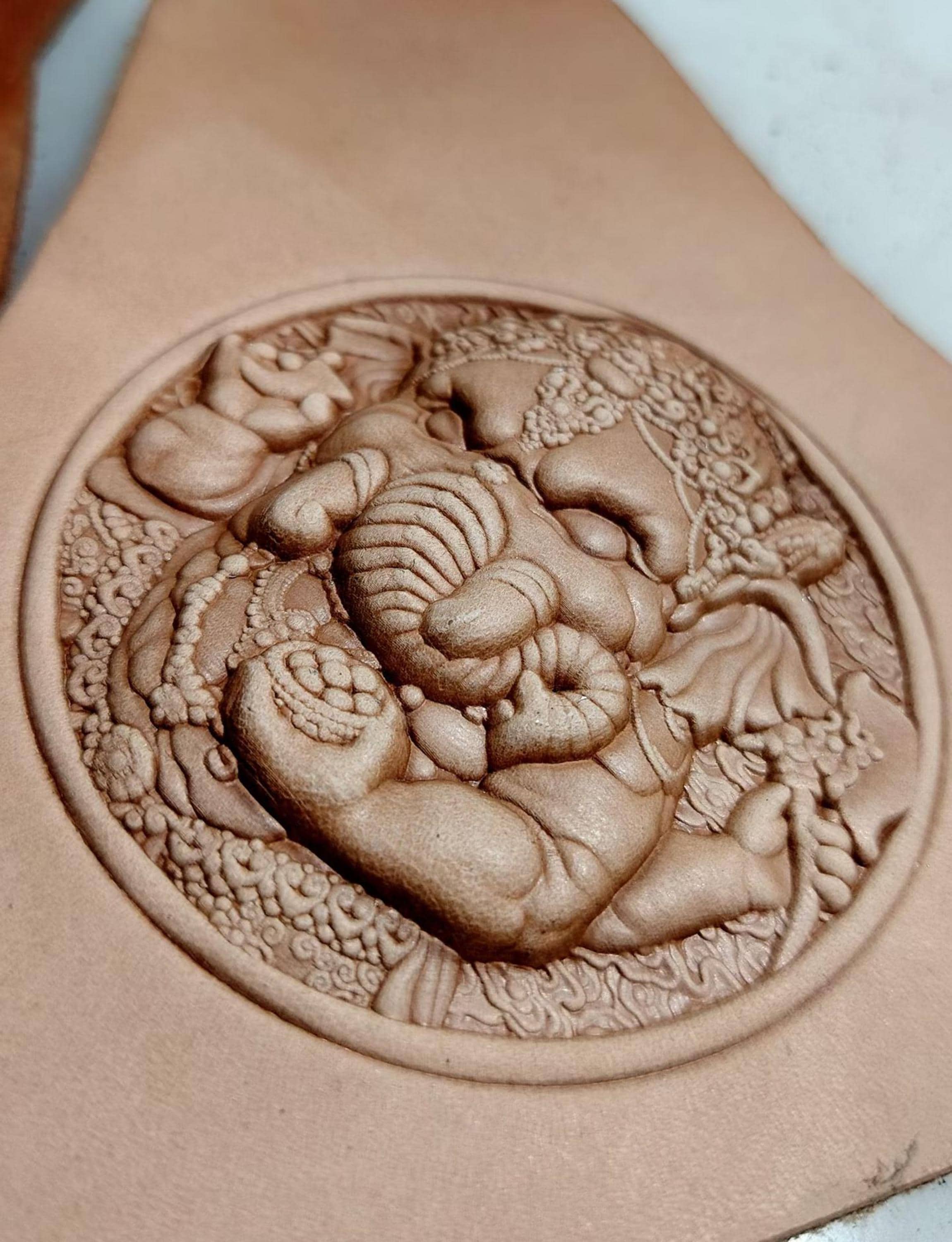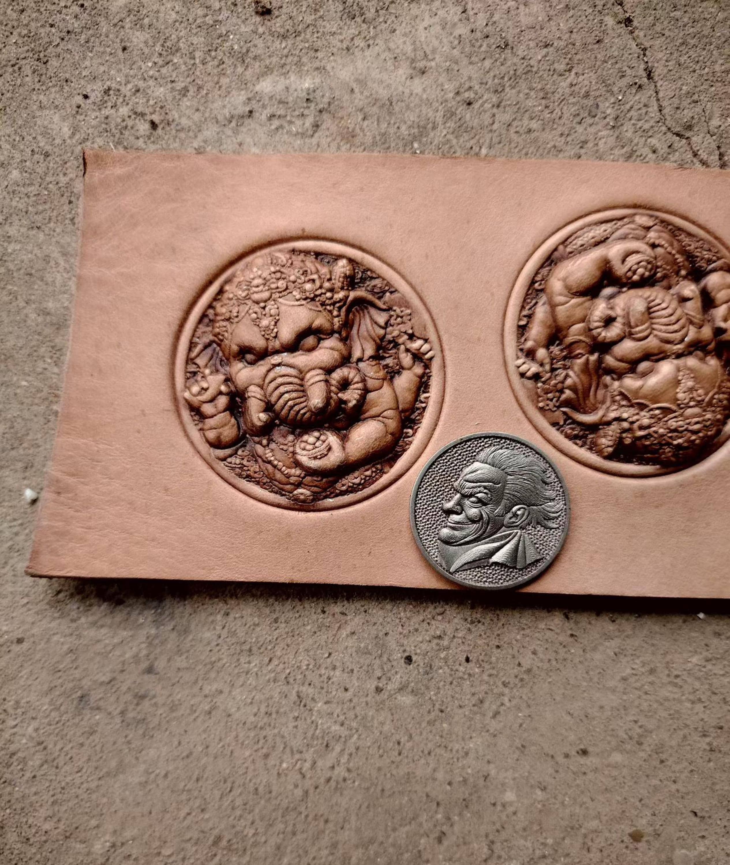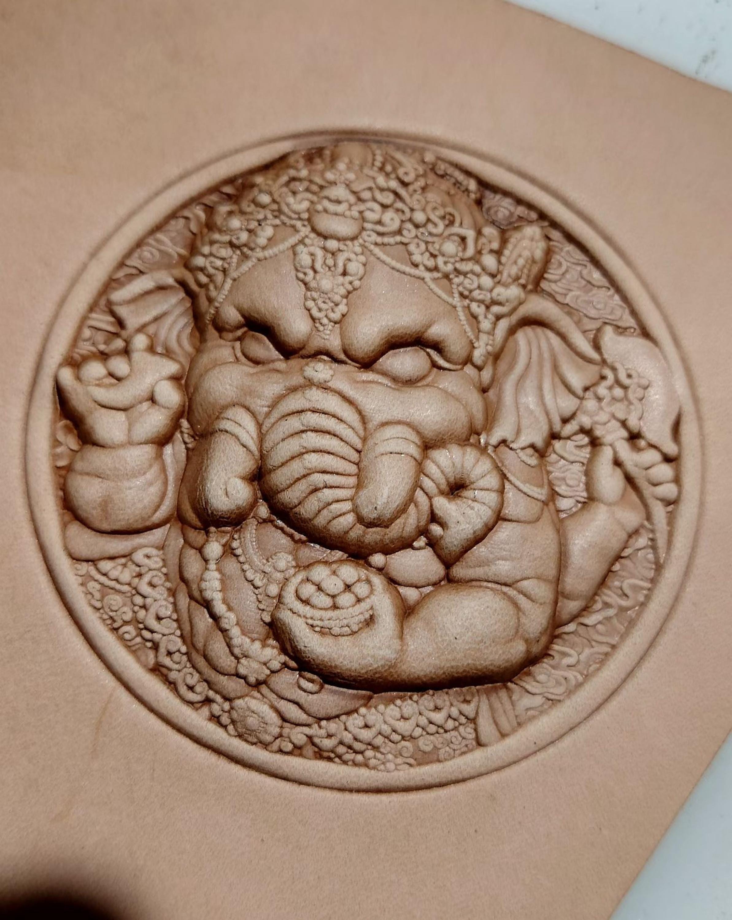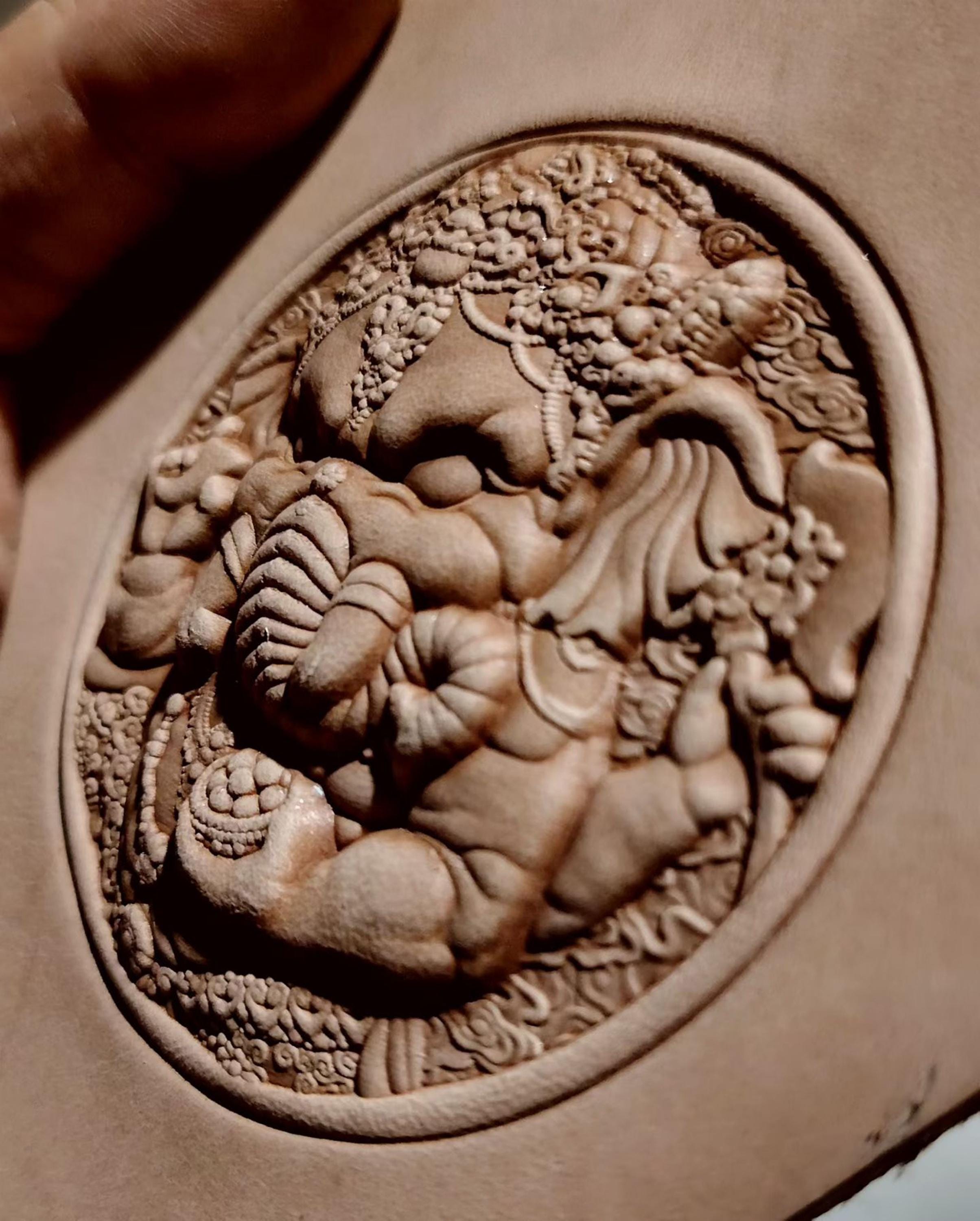 3D leather embossing mold for the God of Wealth, 3D aluminum mold for handmade leather goods, relief embossing mold