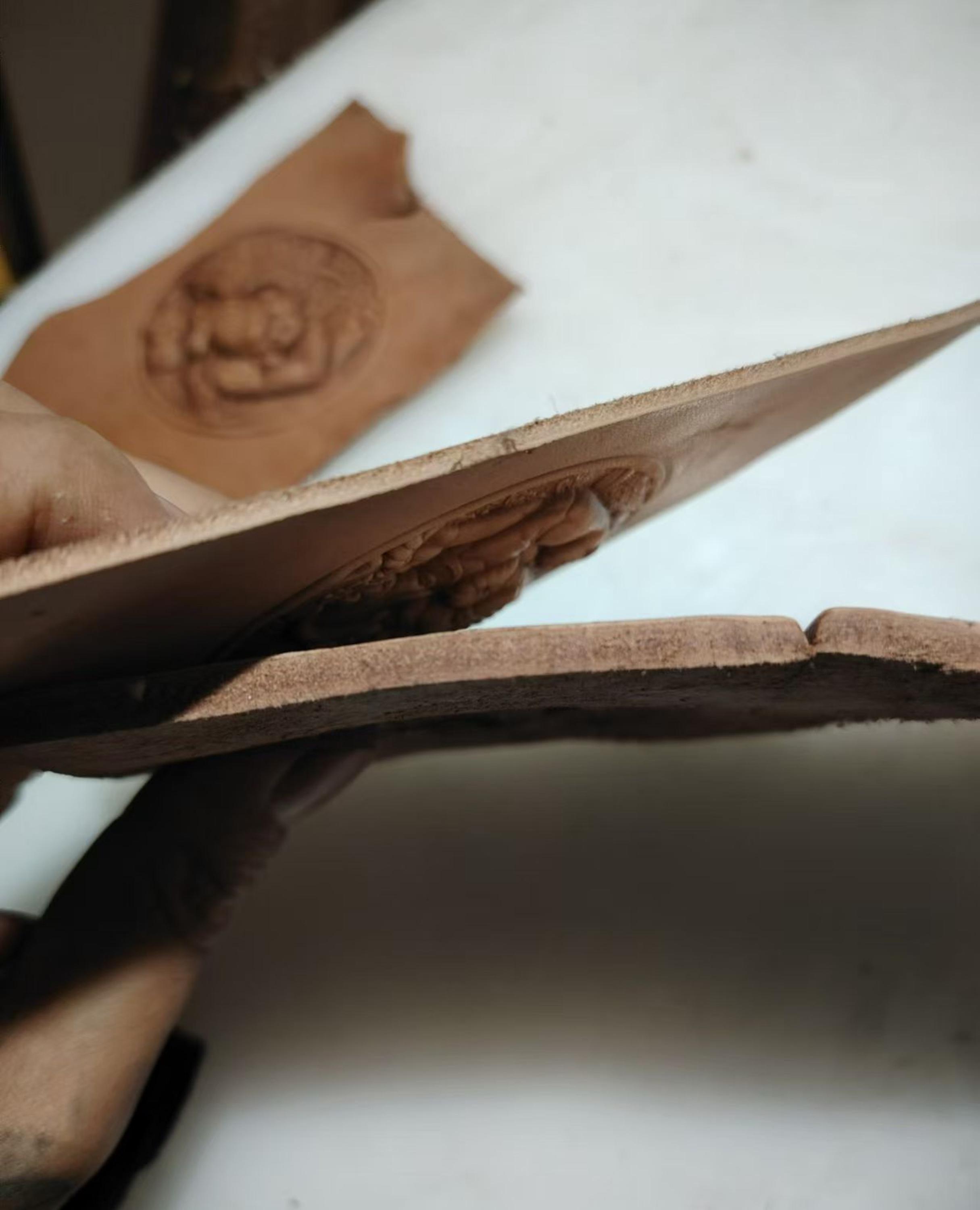 - When pressing, pay attention to the front and back of the mold must be arranged correctly, and the position cannot be misplaced, otherwise, the mold will be easily damaged. You can press the mold first, fix the upper and lower molds and then press the leather