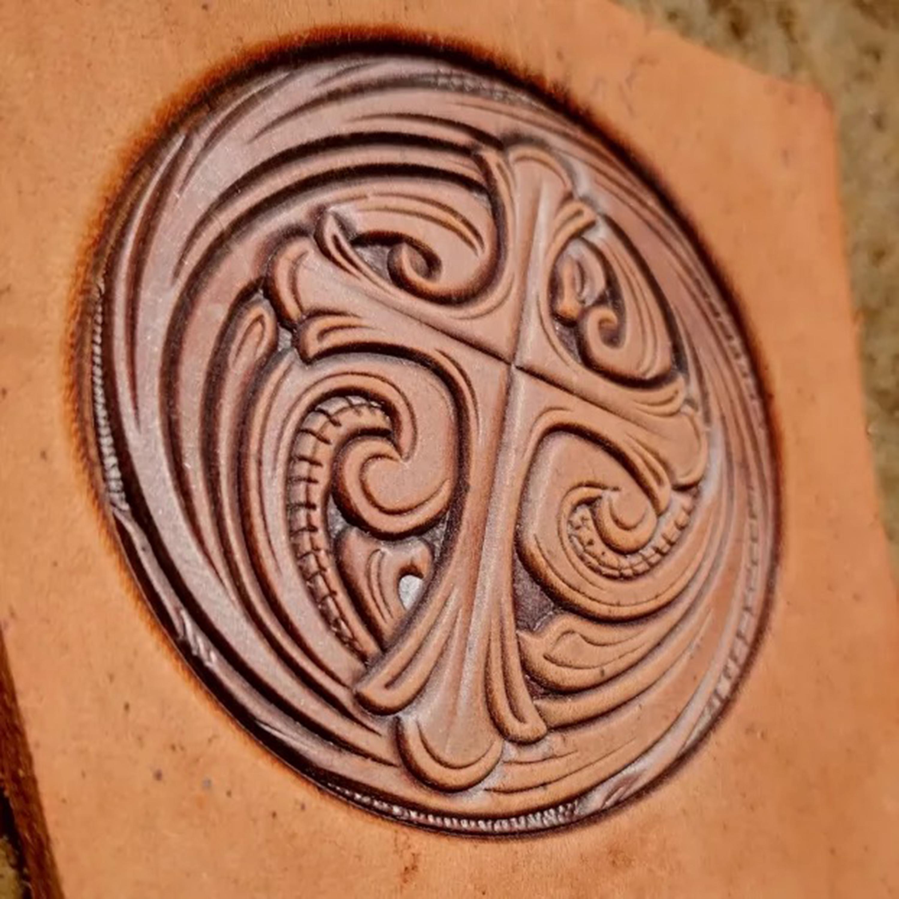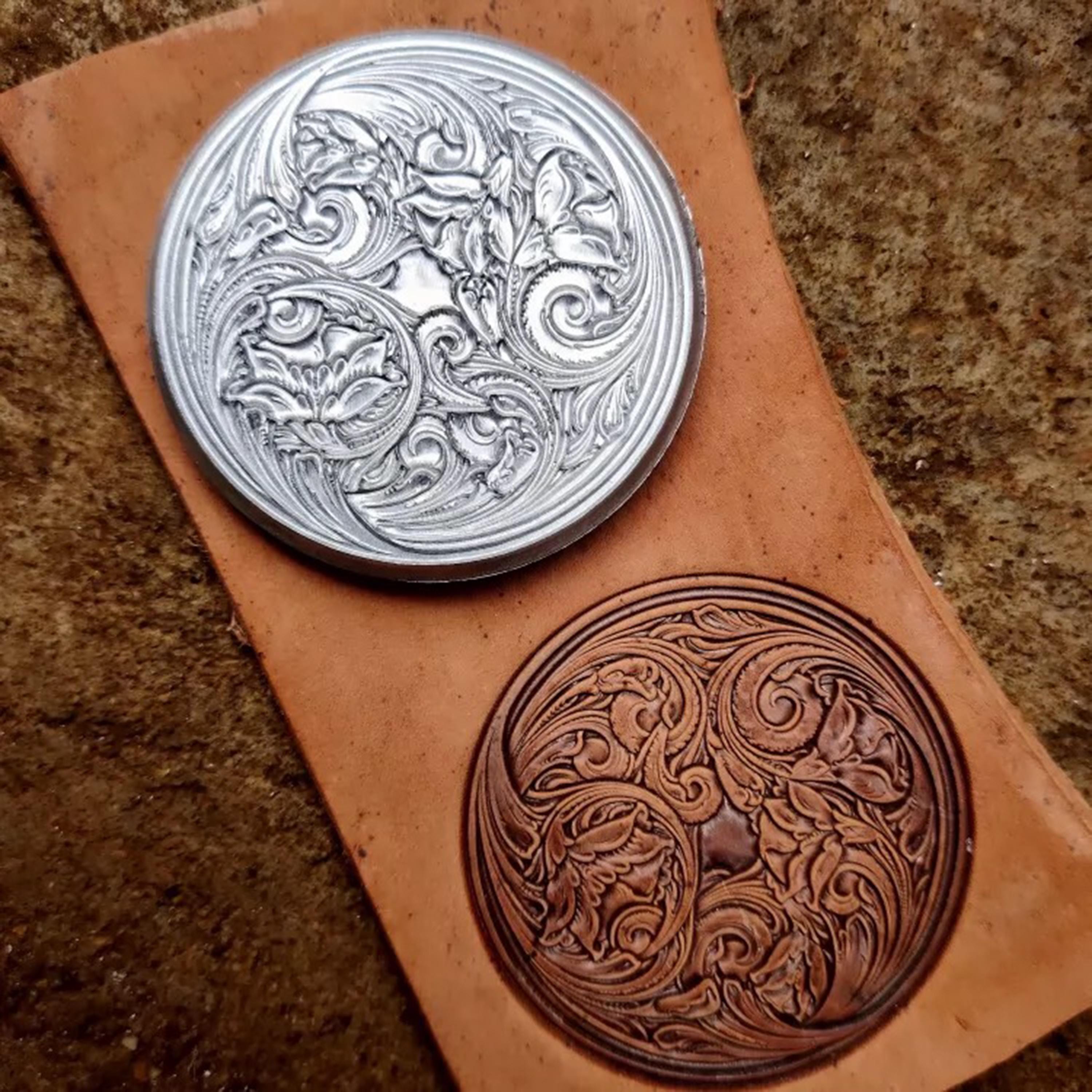 Cross-shaped round arabesque series round leather embossing molds, vegetable tanned leather personalized embossing molds